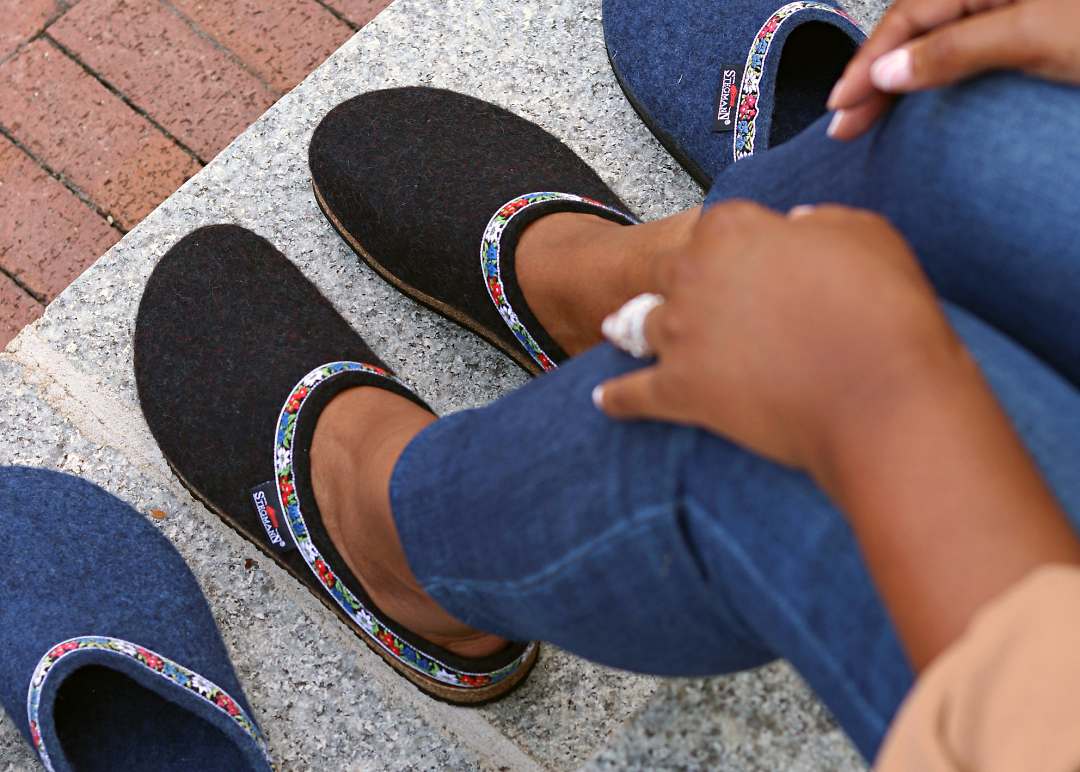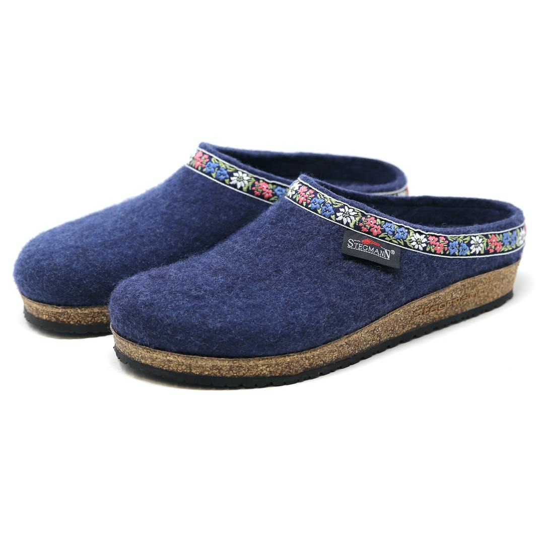 Back by popular demand! The Edelweiss boasts the same quality construction and materials as our classic Original 108. What makes this clog so special is the embroidered band displaying the Edelweiss flower. This small white flower is native to alpine regions in Austria, Switzerland and Germany and can be seen in window boxes and alpine meadows when in bloom. Let your clogs take you on vacation this year! With the same fit and feel as your favorite Stegmann wool clogs, the Edelweiss is a cheerful and cozy addition to your collection.