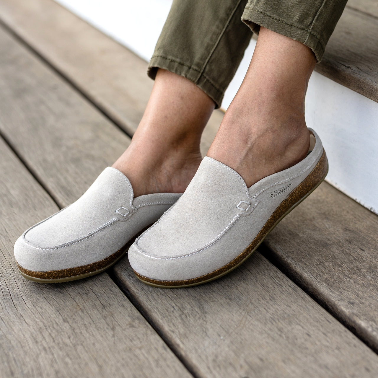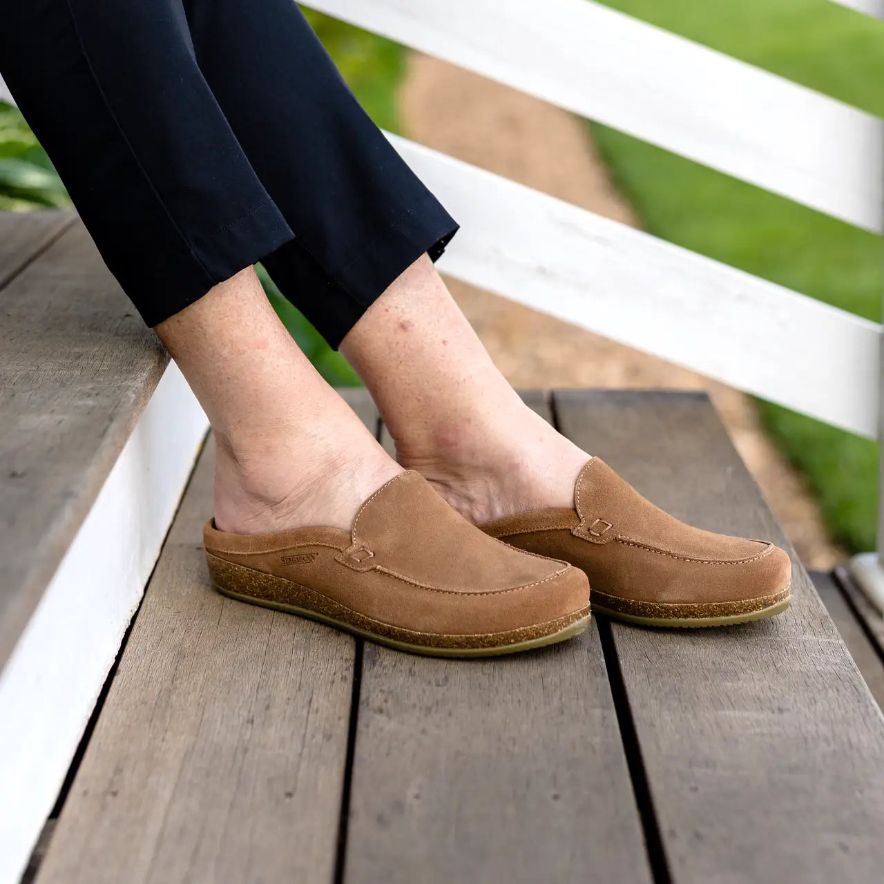 Slip into all-day comfort with the Stegmann Greta Mule - crafted for support, style, and ease. A shock-absorbing cork & latex midsole and removable EVA arch support insert cushion every step, while the wide toe box lets your toes relax naturally. Inside, a soft cotton gabardine lining keeps feet cool and comfortable. Effortless to wear and endlessly versatile, this is the perfect slip-on for busy days, relaxed weekends, and everything in between.
