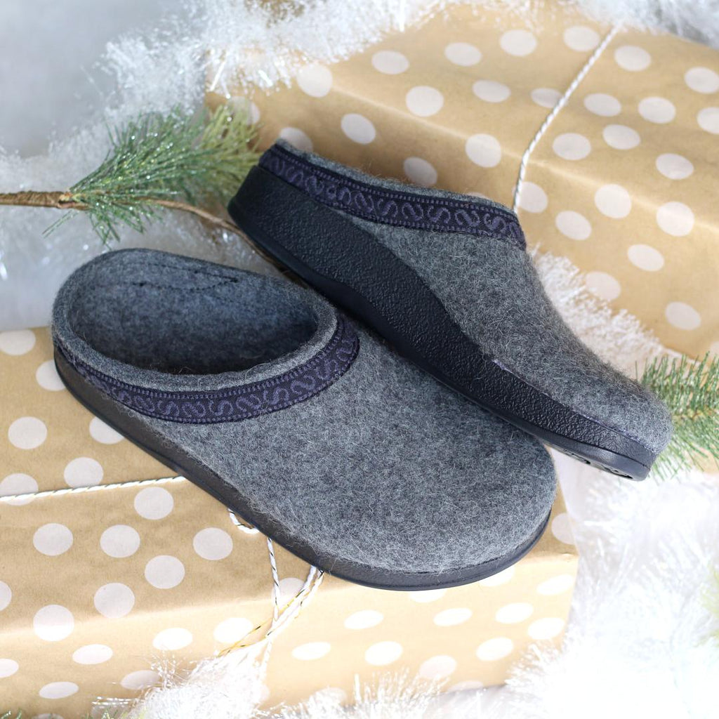 It blends with dress, work, or a casual outfit effortlessly. The gorgeous leather upper hides a soft wool-felt lining and a wide toe box for natural foot flex and no toe-squeezing. For a gift that hits the sweet spot between polished and plush, this is it.