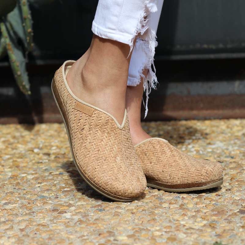 The Cork Maria Mule is the ultimate summer must-have! Made with natural woven cork and lined with breathable canvas, you'll feel like you're walking on sunshine. The arch support and sustainable cork sole make it a foot-friendly and eco-friendly choice. Ready to take your summer outfits to the next level? Look no further than this adorable, stylish little mule. Comfort, fashion and sustainability all in one!